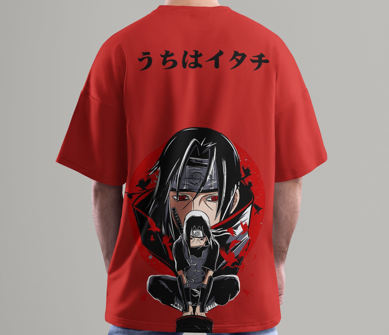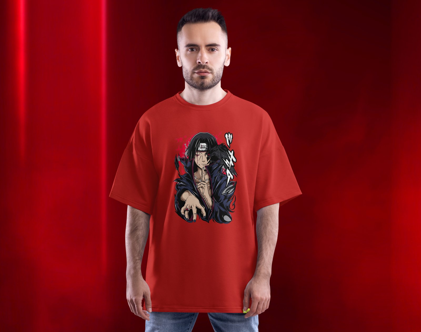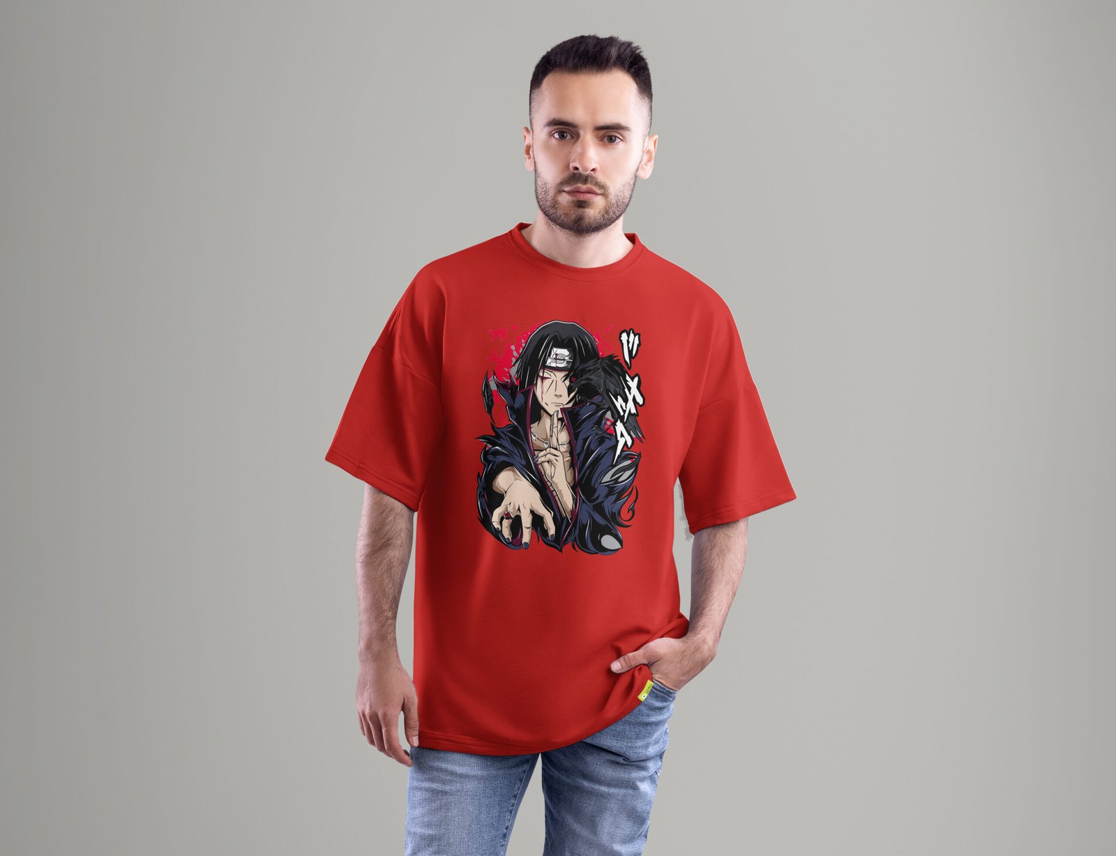 Pair your Itachi Oversized T-Shirt with ripped cargo pants, sneakers, and a black beanie for a brooding street ninja look. Layer it under a bomber jacket for that winter Genin drip. For anime events or photoshoots, combine with red eye contacts and a Uchiha cloak to level up your aesthetic.