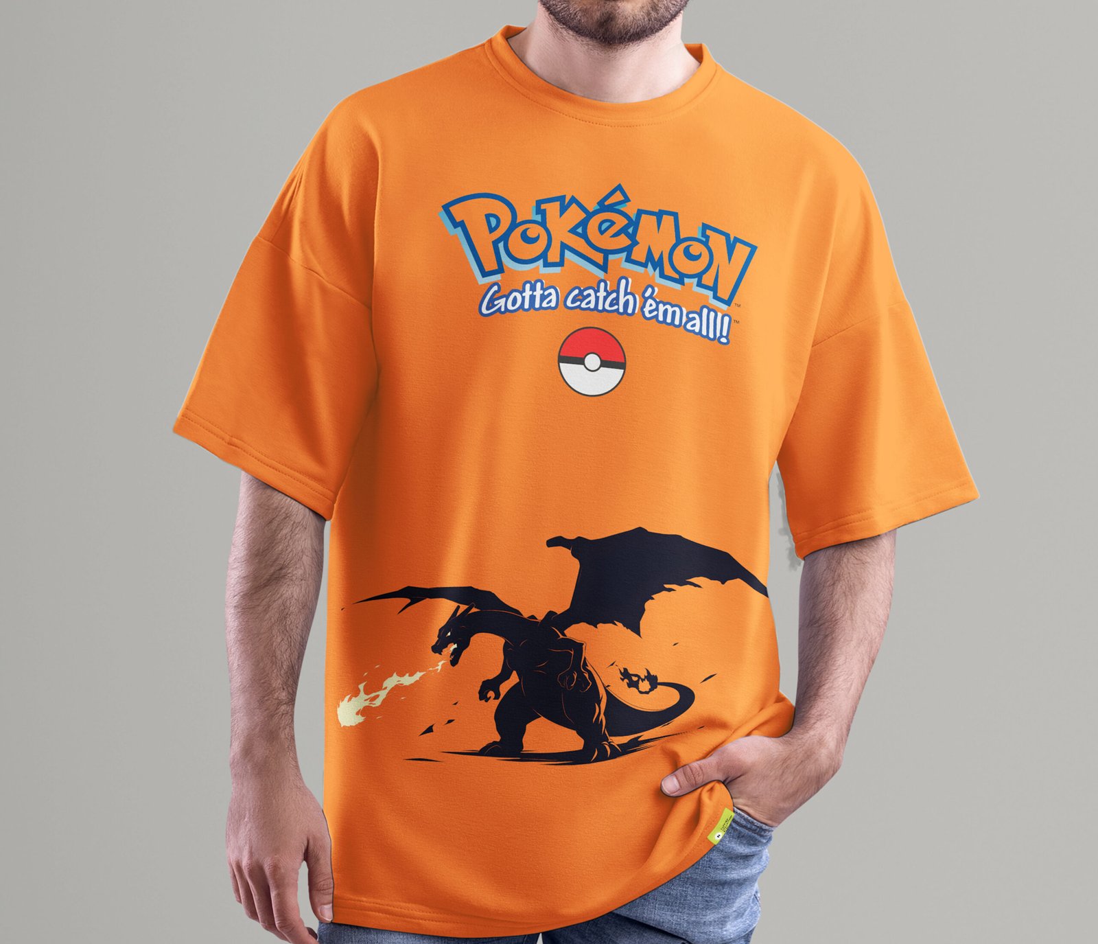 Channel the fiery spirit of Charizard with this bold orange oversized tee. Featuring the iconic Pokémon logo and a front-facing Charizard flame print, it blends anime nostalgia with heavyweigh