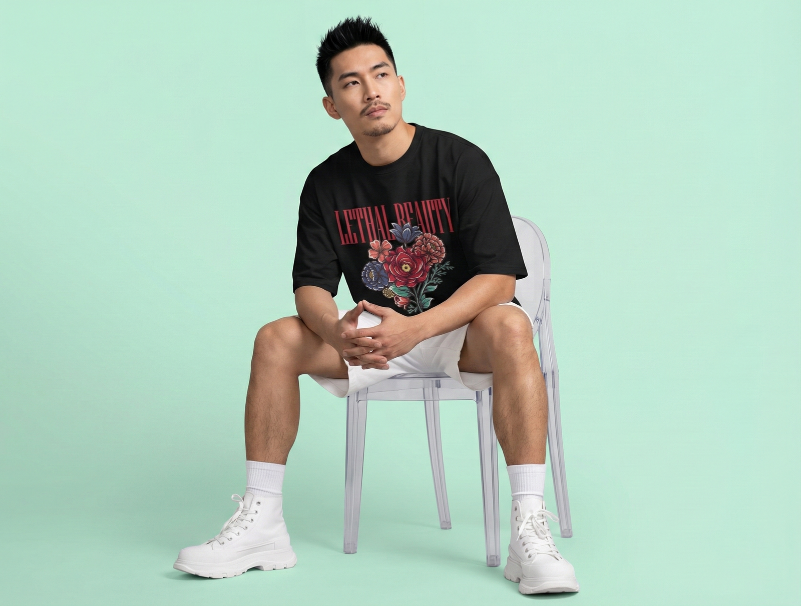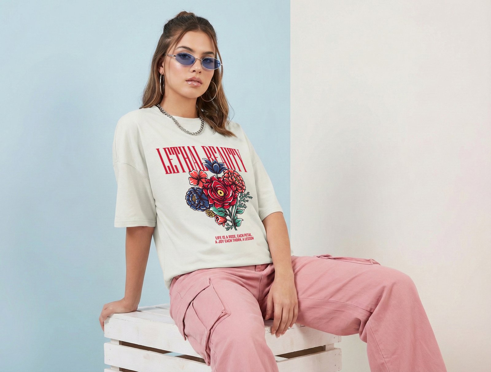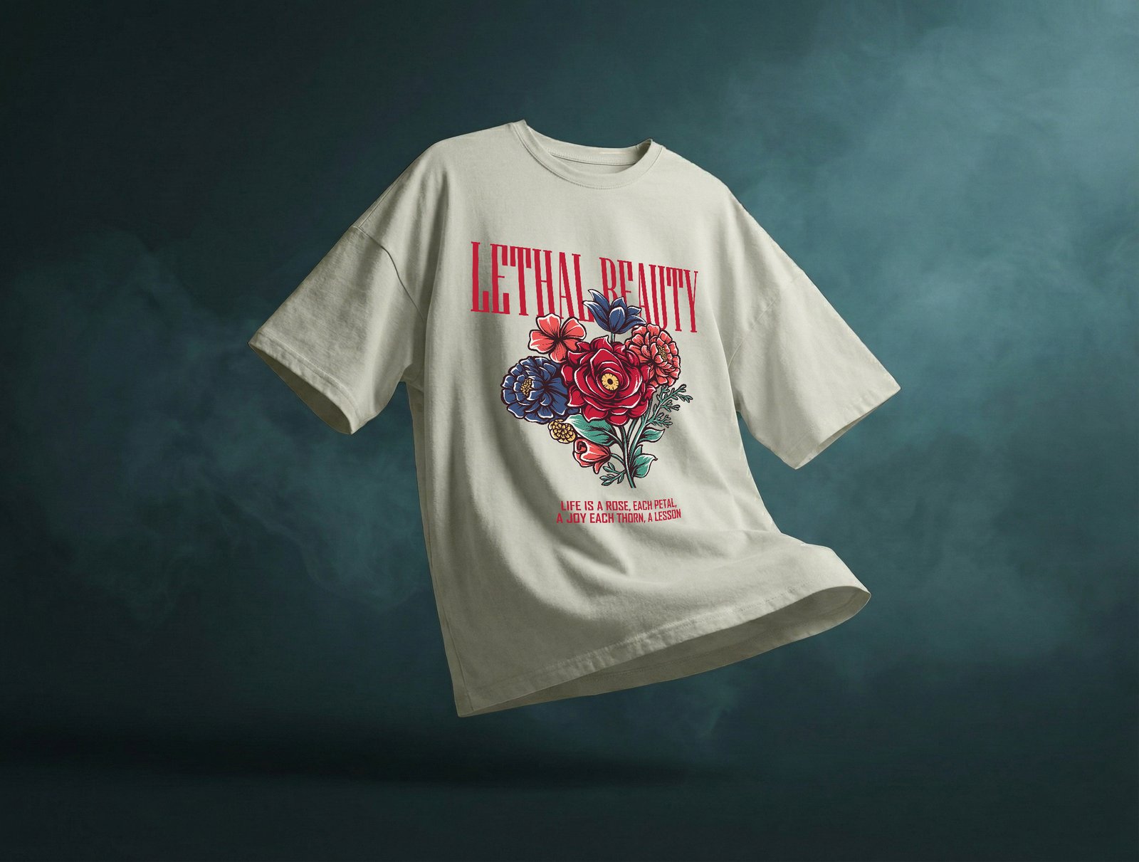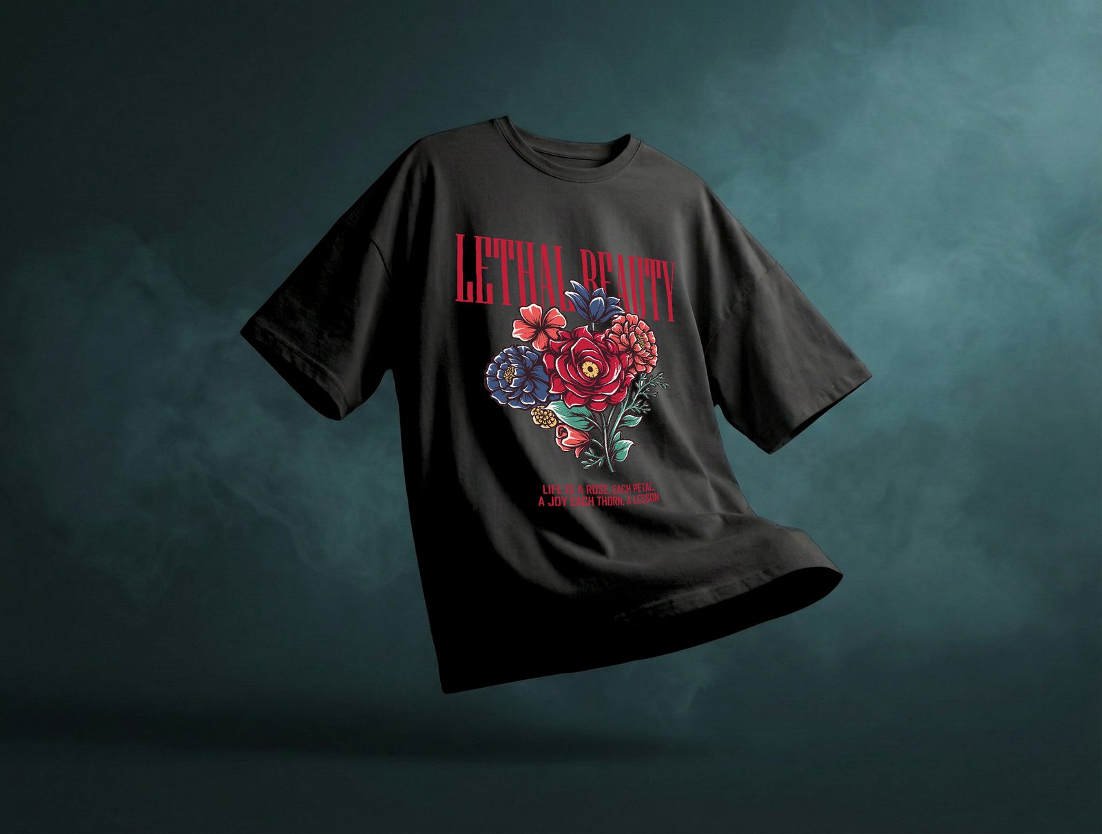 For accessory lovers, minimalism works best — let the floral artwork take center stage. The Lethal Beauty Unisex Oversized T-Shirt is equally versatile for day-to-day wear, evening gatherings, or creative environments where individuality is valued. Its bold visual statement complements confidence and originality.