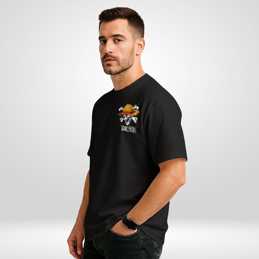 The front keeps it minimal with a clean chest emblem of the iconic Straw Hat Jolly Roger, giving balance to the intense back artwork. Together, these design elements make the Luffy Final War Oversized T-Shirt a bold and wearable homage to anime greatness.