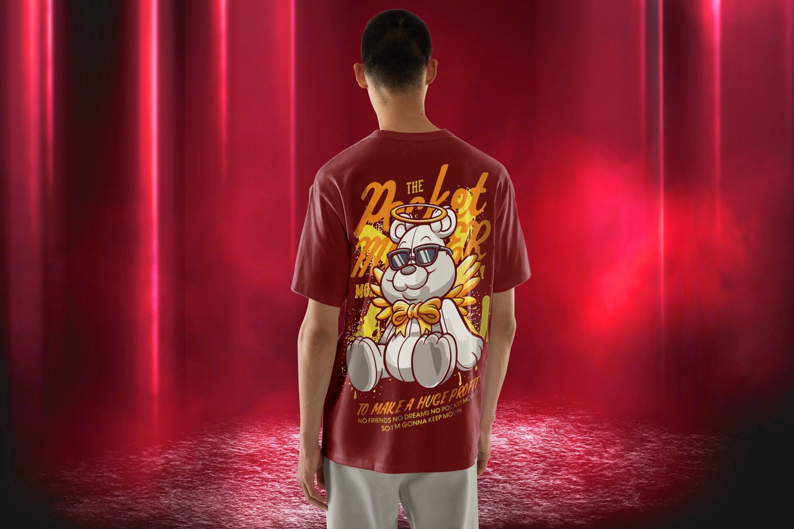 The pocket money bear t-shirt is your ultimate hustle companion. This oversized streetwear tee blends bold graphic drama with motivational flair—crafted for achievers, students, and dreamers alike. Made of premium 240 GSM French Terry cotton and dyed in a deep wine-red shade, it’s both a statement and a mindset.