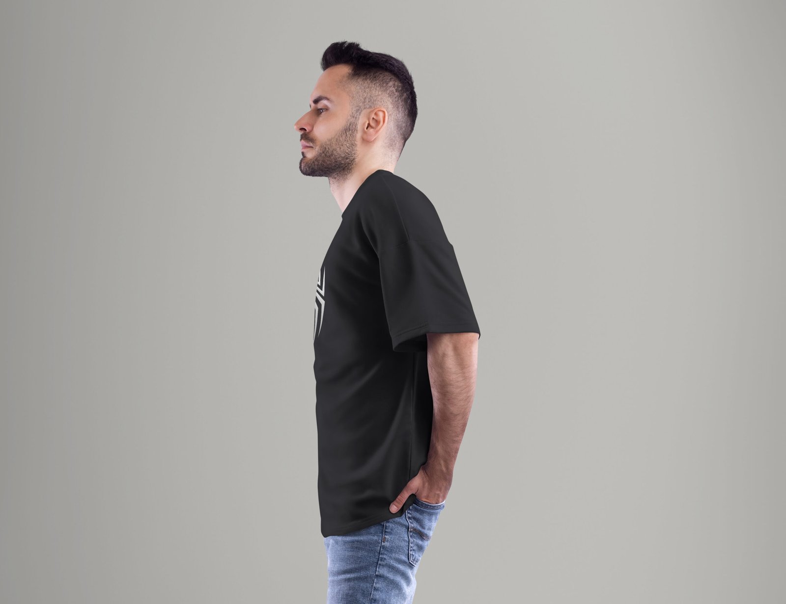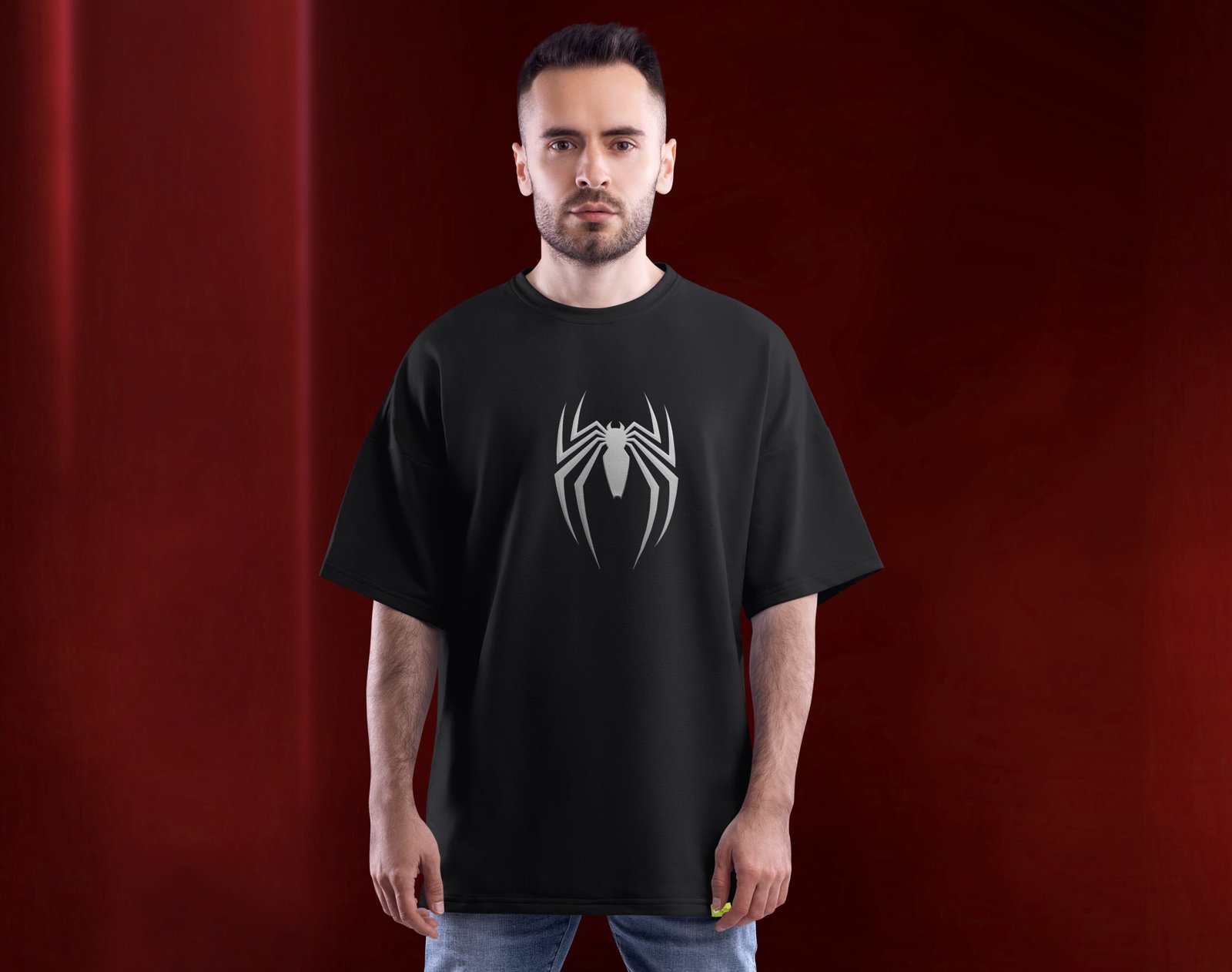 Streetwear-inspired oversized proportions provide relaxed shoulders and a roomy body, making the Scarlet Spider Oversized T-Shirt unisex and versatile for layering or solo wear. Ribbed neckline and double-stitched hems enhance durability and shape retention.